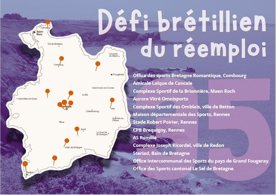 Du 4 mai au 20 juin 2026, 13 sites à travers l’Ille-et-Vilaine accueilleront un bac de collecte de matériel sportif pour leur donner une nouvelle vie.